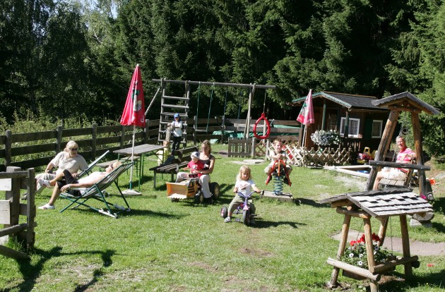 Grillen und Chillen: Auf der Ochenalm kannst du Grillabende feiern oder einfach nur gemütlich auf der Terrasse sitzen, während die Kinder am Spielplatz und im Wasserpark ihren Spaß haben.