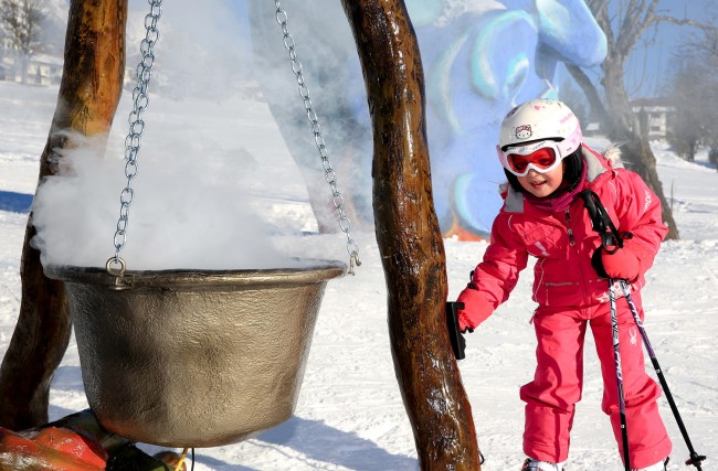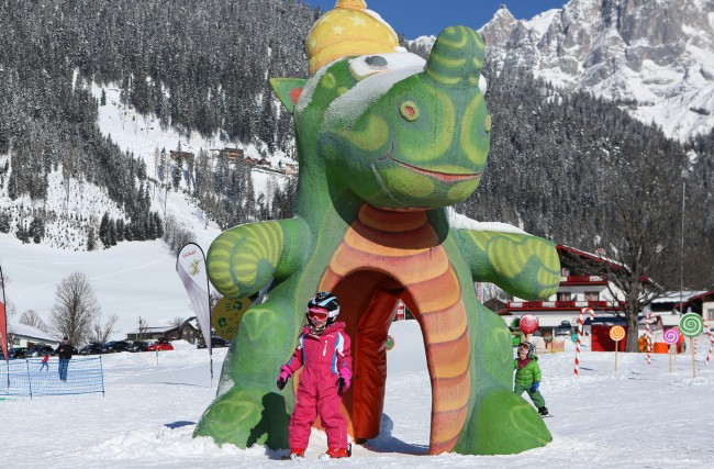 Auf der Abenteuerwiese am Kalilift erlernt dein Kind das Skifahren ganz spielerisch. Hier besucht es die Zwerge in ihrem Dorf und schlüpft in ihre kleinen Pilzhäuser. Gleich nebenan wohnt Maskottchen Kali. Am wärmenden Steinofen fühlt sich nicht nur der kleine Drache besonders wohl. Rund um diesen gemütlichen Rastplatz stehen Tipis und Iglus.
