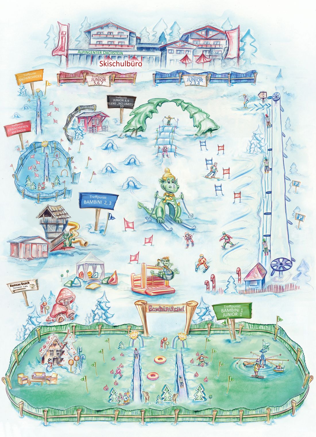 Die Skischule Ramsau hat ihren Standort im Kaliland bei Sport Ski Willy. Die WM-Skischule Royer hat ihren Sitz am Bergkristall-Lift.